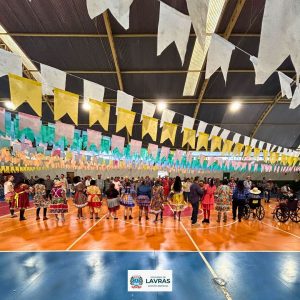 Na tarde desta terça-feira, dia 25, o ginásio da SCELT foi enfeitado com bandeirinhas coloridas e balões para celebrar a tradicional Festa Junina do Social.