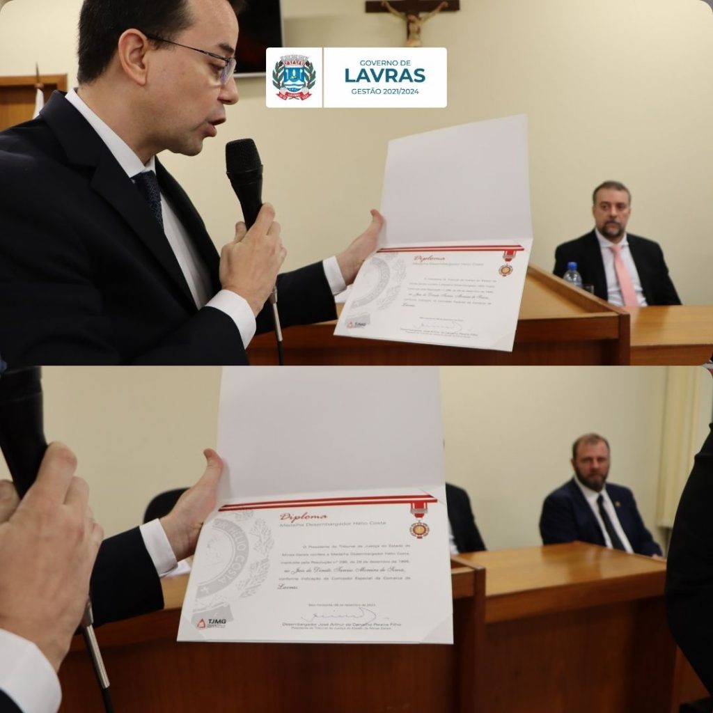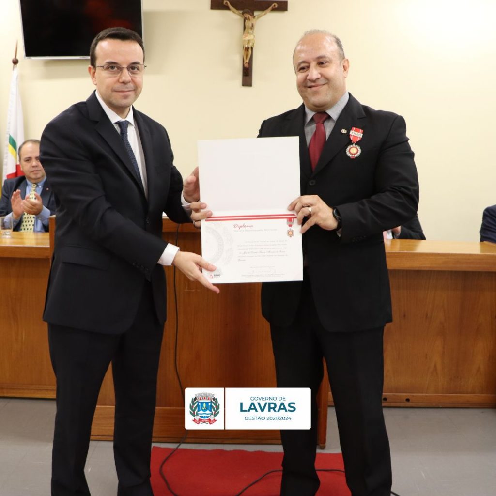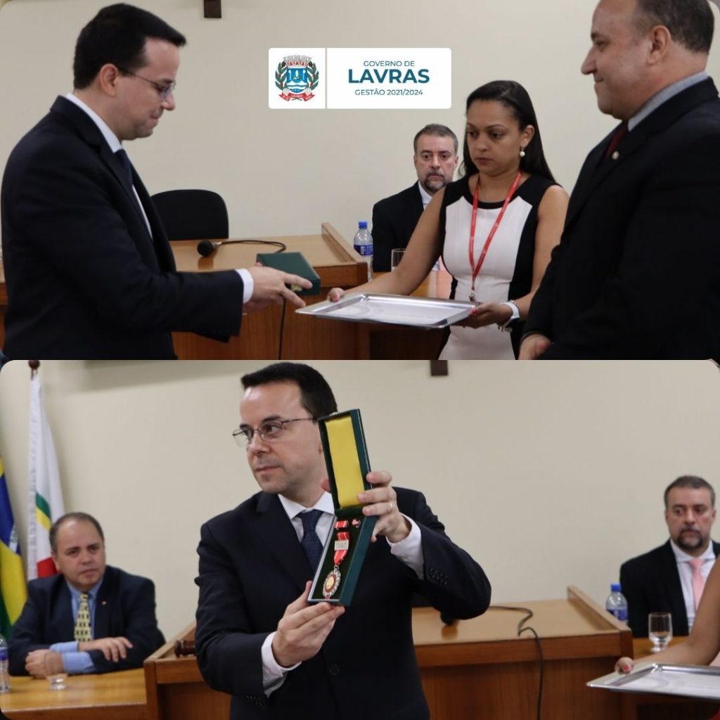 Na última sexta-feira, dia 15, o Procurador Geral do Município, Dr. Luciano Salim, e o Assessor de Relações Institucionais, Marcelo Sabato, representaram o município na cerimônia de entrega da medalha Hélio Costa. Esta condecoração é concedida pelo Tribunal de Justiça do Estado de Minas Gerais (TJMG) da comarca de Lavras, a personalidades que se destacaram por relevantes serviços prestados à advocacia e à justiça mineira.