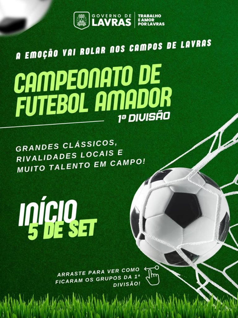 A bola vai voltar a rolar nos campos de Lavras! A partir do dia 05 de setembro, tem início o Campeonato de Futebol Amador – 1ª Divisão 2025, uma das competições mais aguardadas pelos amantes do esporte na cidade.